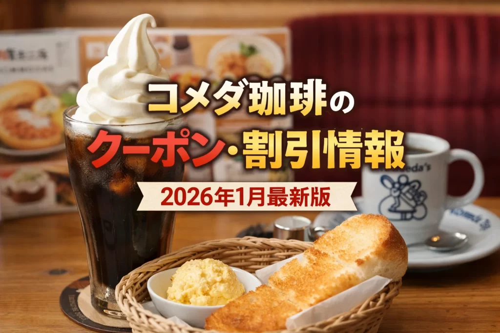 コメダ珈琲をお得に使うためのクーポン&割引情報を、2026年1月6日時点の最新公表情報・公式発表を踏まえてアップデートしました。公式アプリ機能、KOMECA(コメカ)と金シャチ会員の還元、Pontaパス/スゴ得など外部サブスク優待、コーヒーチケット、P... -