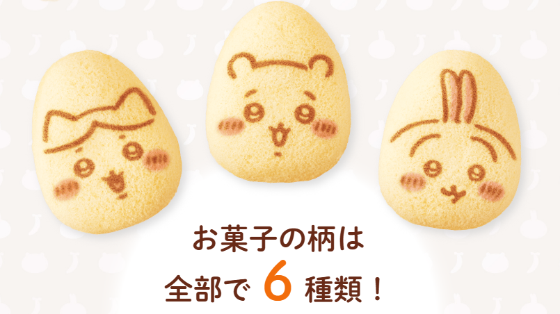 スポンジケーキの絵柄は全6種類です。「ちいかわ」「ハチワレ」「うさぎ」「くりまんじゅう」「モモンガ」「ラッコ」がデザインされています。個包装は「ちいかわ」「ハチワレ」「うさぎ」の3種類です。どの絵柄が入っているかはランダムなので、開けてみてのお楽しみです。