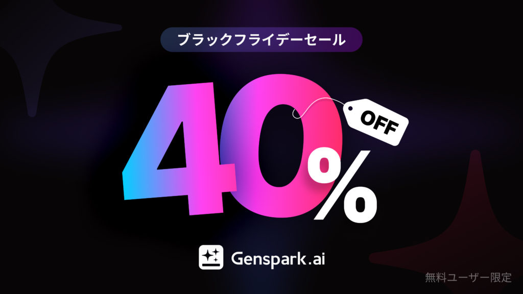 この4日間限定で、Gensparkは無料プランユーザー向けに年間プラン40%オフの特別割引を提供します。これは、2025年のGensparkブラックフライデーとして過去最大規模の割引キャンペーンです。