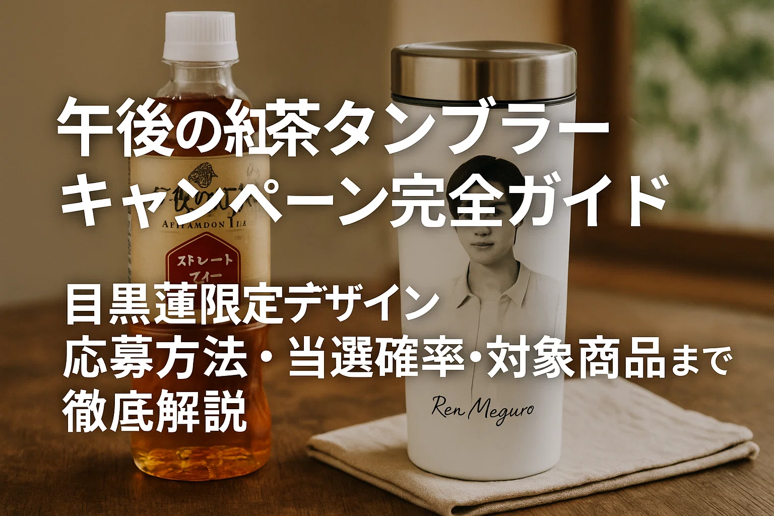 2025年12月1日より、キリンビバレッジが「午後の紅茶×目黒蓮」限定デザインタンブラーが当たる「冬の、あったかタンブラープレゼントキャンペーン」を開始しました。本記事では、応募方法から対象商品、当選のコツまで、キャンペーンの全情報をわかりやすく解説します。