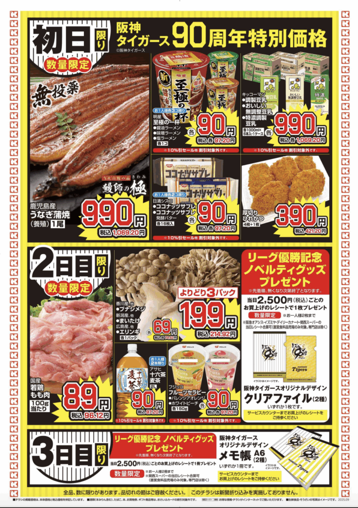 - 関西スーパー 江坂店:「2025阪神タイガースセール」チラシ5枚掲載
