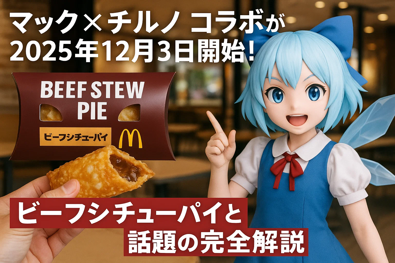 2025年12月2日、日本マクドナルドの公式X(旧Twitter)アカウントがシルエット画像を投稿し、東方Projectの人気キャラクター「チルノ」とのコラボが判明。翌12月3日には公式動画「チルノのビーフシチューパイさんすう教室」が公開され、SNSで大きな話題となりました。