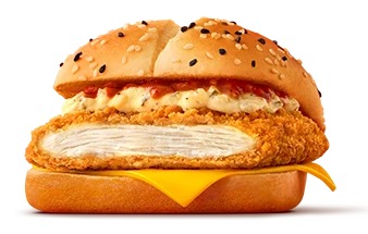 こちらも新商品で、ボリューミーなチキンパティを旨辛なホットチリガーリックソースとサワークリームの爽やかなコクが特長のサワークリームタルタルソースでサンドした一品です。2種類のソースが織りなす味わいの深さが楽しめます。辛味が苦手な方はご注意ください。