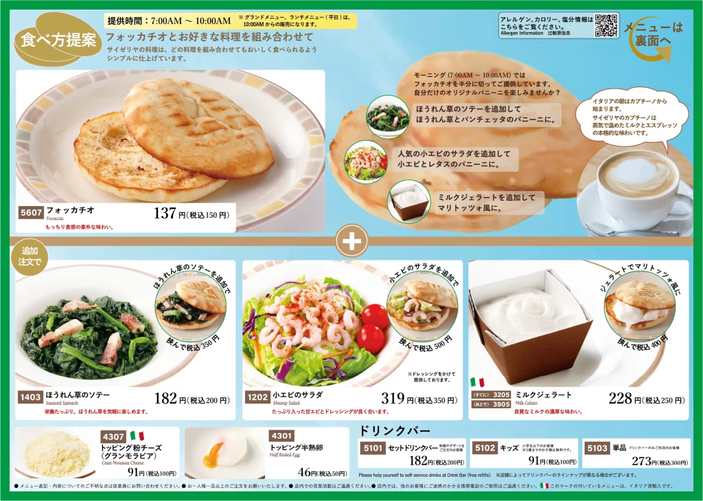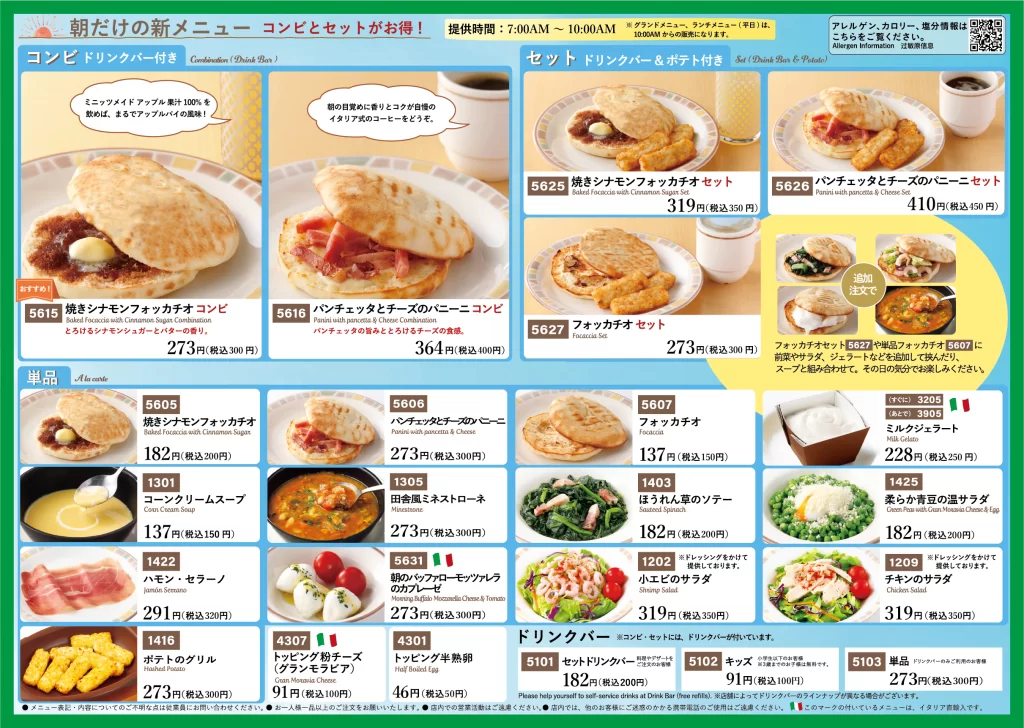 - 朝サイゼ提供時間: 7:00~10:00