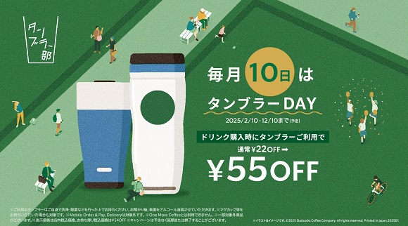 • 毎月10日はマイタンブラー持参で通常22円引きが55円引きに拡大