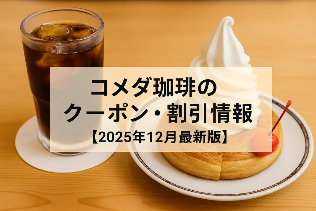 コメダ珈琲をお得に使うためのクーポン&割引情報を、2025年12月3日時点の最新公表情報・公式発表を踏まえてアップデートしました。公式アプリ機能、KOMECA(コメカ)と金シャチ会員の還元、Pontaパス/スゴ得など外部サブスク優待、コーヒーチケット、...