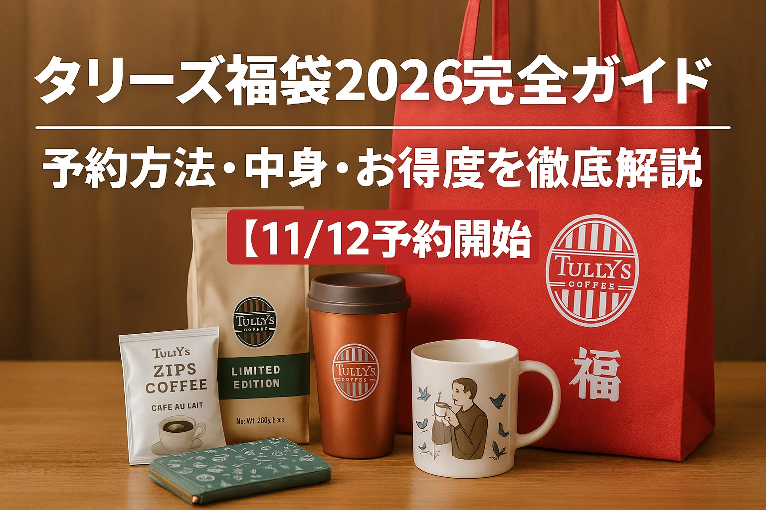 タリーズコーヒーの福袋「2026 HAPPY BAG」が2025年11月12日11時から予約受付を開始しました。本記事では、予約方法から中身の詳細、5,500円と10,000円の比較、ドリンクチケットの使い方まで、購入前に知っておくべき情報を網羅的に解説します。