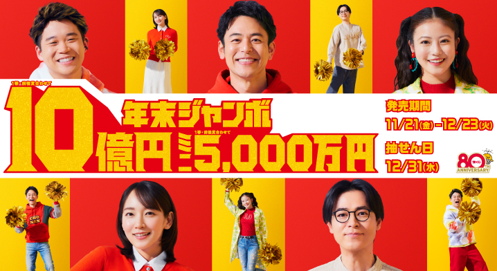 • 最高10億円(1等7億円+前後賞各1.5億円)が狙える